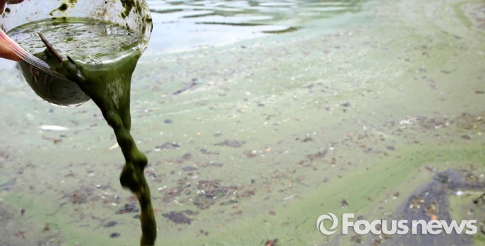 (청주=포커스뉴스) 10일 충북 청주시 문의면 일대 대청호에서 녹조와 녹조부유물이 보이고 있다. 지난 3일 대청호 전 수역에 조류 경보 '관심단계'가 발령됐다. 문의지역의 유해 남조류 세포수가 1ml당 7470을 기록했다.