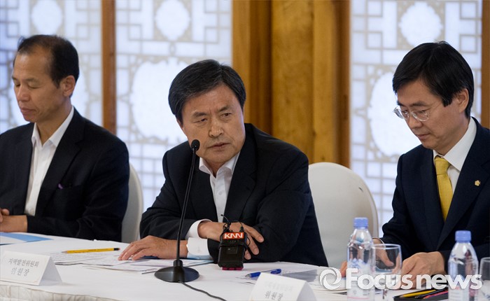 (서울=포커스뉴스) 10일 오후 서울 여의도 국회 사랑재에서 열린 지역경제 활성화를 위한 규제프리존 특별법 왜 필요한가? 간담회에 참석한 허남식(가운데) 지역발전위원장이 인사말을 하고 있다.