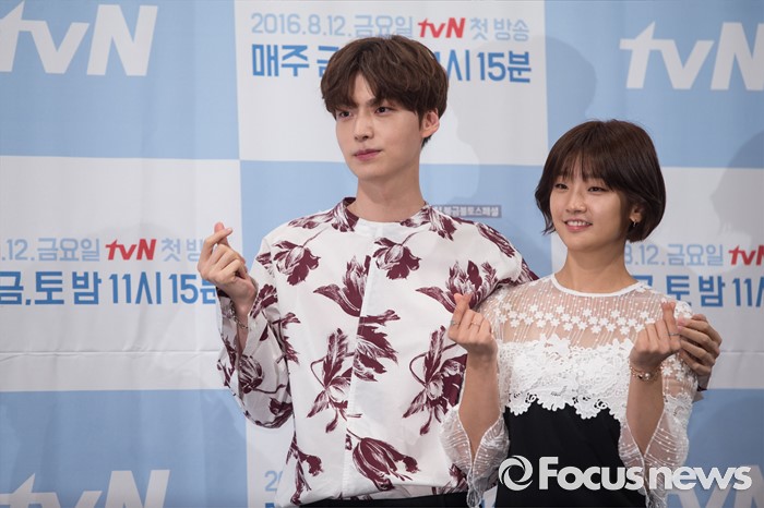 (서울=포커스뉴스) 10일 오후 서울 강남구 임피리얼 팰리스호텔에서 열린 tvN 금토드라마 '신데렐라와 네 명의 기사' 제작발표회에 참석한 배우 안재현(왼쪽)과 박소담이 포토타임을 갖고 있다.