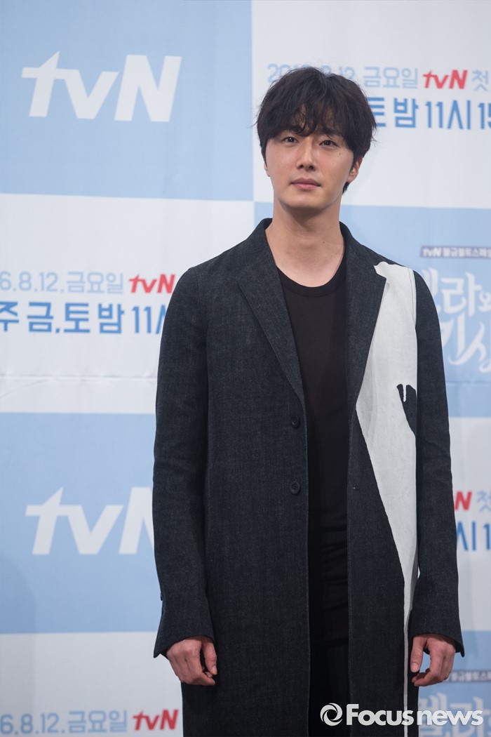 (서울=포커스뉴스) 10일 오후 서울 강남구 임피리얼 팰리스호텔에서 열린 tvN 금토드라마 '신데렐라와 네 명의 기사' 제작발표회에 참석한 배우 정일우가 포토타임을 갖고 있다.