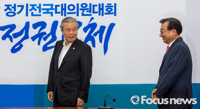 | △ 면담장으로 들어서는 김종인 대표-이정현 대표 |