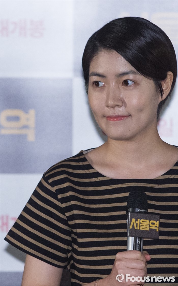 (서울=포커스뉴스) 10일 오후 서울 중구 메가박스 동대문에서 열린 애니메이션 '서울역' 언론시사회에 참석한 배우 심은경이 취재진에게 질문을 받고 있다.