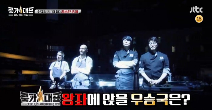 10일 오후 방송될 '쿡가대표'의 최종회에서는 6개국 8팀이 요리 최강자 자리를 놓고 펼친 '월드 챔피언십'의 결승전 결과가 공개된다. 최현석과 오세득 콤비가 강력한 우승 후보로 평가받는 미국팀과 맞대결 한다.