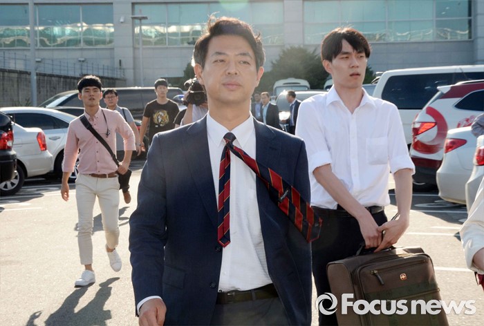 (인천공항=포커스뉴스) 사드배치에 반발하는 중국 측 입장을 듣기 위해 중국을 방문한 김영호(가운데) 더불어민주당 의원이 10일 오후 인천국제공항을 통해 귀국하고 있다.