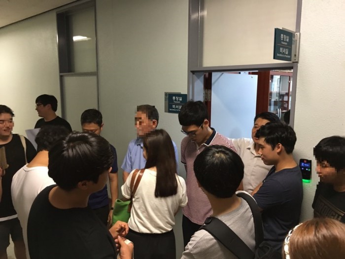 학생들은 지난 5일 서울캠퍼스 총장실과 부총장실, 교무처장실을 항의 방문하며 학교 측에 9일까지 시정요구를 했지만 받아들여지지 않으면서 이날 총장실 점거를 시도하게 됐다.
