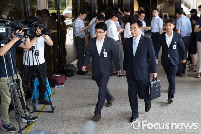 (서울=포커스뉴스) 법인세 등 부정 환급 의혹을 받고 있는 허수영 롯데케미칼 사장이 11일 오전 서울 서초구 서울중앙지검으로 출석하고 있다.