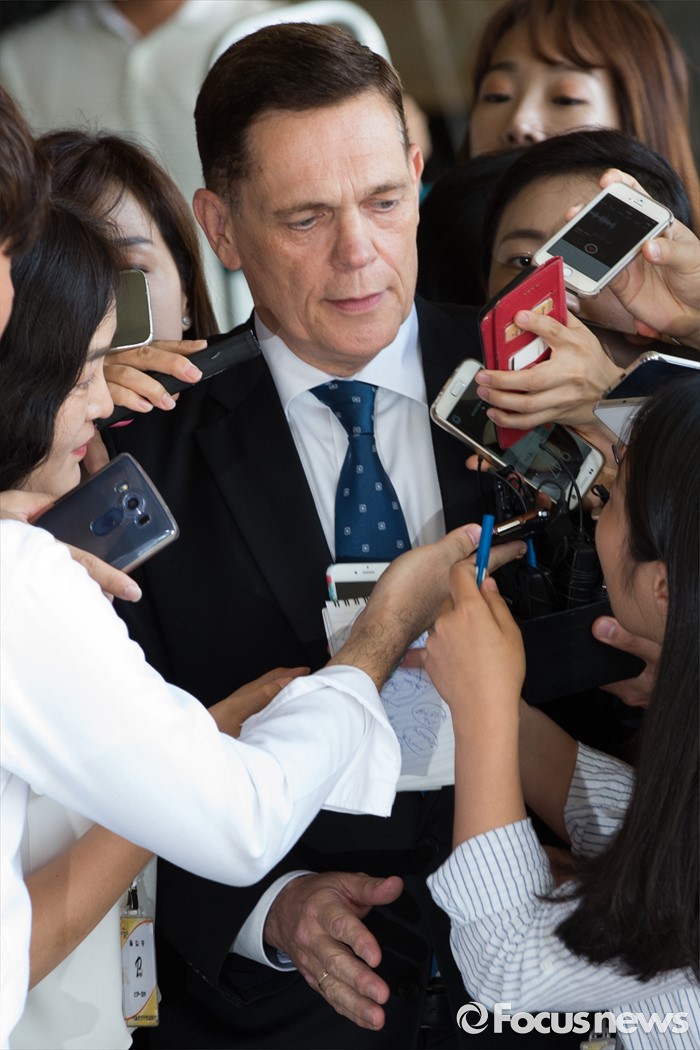 (서울=포커스뉴스) 폭스바겐 배출가스 조작 의혹을 받고 있는 요하네스 타머 아우디폭스바겐코리아 총괄사장이 11일 오전 서울 서초구 서울중앙지검으로 출석해 취재진의 질문을 받고 있다.