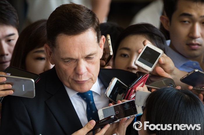 (서울=포커스뉴스) 폭스바겐 배출가스 조작 의혹을 받고 있는 요하네스 타머 아우디폭스바겐코리아 총괄사장이 11일 오전 서울 서초구 서울중앙지검으로 출석해 취재진의 질문을 받고 있다.