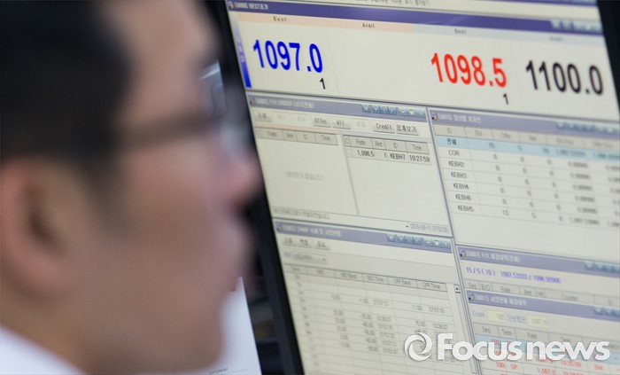 (서울=포커스뉴스) 11일 오전 서울 중구 KEB 하나은행 딜링룸에서 한 딜러가 업무를 보고 있다.