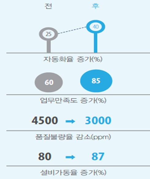 생산성은 56% 늘었고 불량률은 50% 이상 감소했으며, 직원들의 참여의식 제고까지 이끌어낼 수 있었다.