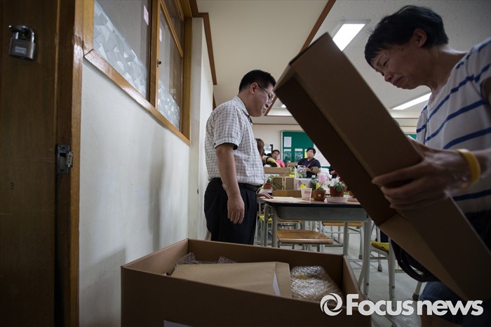 (안산=포커스뉴스) 세월호 참사에서 희생된 단원고등학교 학생들의 교실 이전 절차가 진행 중인 11일 오전, 경기도 안산시 단원고등학교 기억교실에서 희생 아이들 가족들이 책상 정리를 하며 슬픔에 젖어 있다.