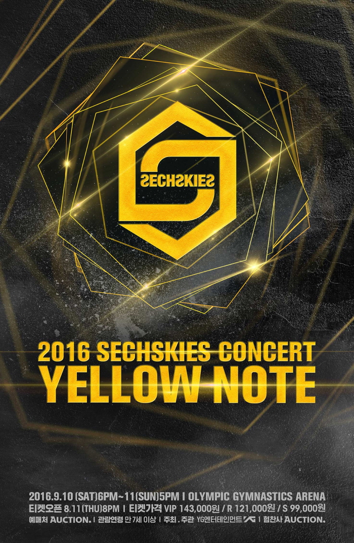 YG엔터테인먼트는 기대감이 높아진 관객들을 위해 예정되어있던 6월 콘서트를 오는 9월 10, 11일 서울 올림픽공원 체조경기장에서 개최하는 것으로 변경하고, 공연을 위한 다양한 준비 작업을 해오고 있다.젝스키스의 콘서트 ‘옐로우 노트(YELLOW NOTE)’의 티켓팅이 11일 오후 8시부터 옥션을 통해 진행된다. 사진은 공연 포스터. <사진제공=YG엔터테인먼트>