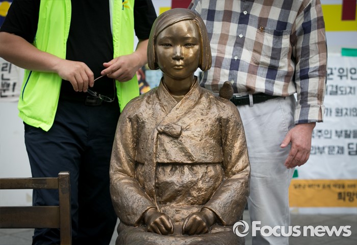 (서울=포커스뉴스) 1000번째 수요집회가 열렸던 2011년 12월 14일 서울 종로구 일본대사관 근처에 '평화의 소녀상(소녀상)'이 세워졌다. 일제강점기에 일본군위안부로 끌려가기 전 소녀의 모습이었다.