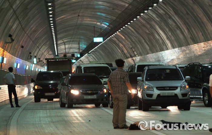 11일 오후 6시 10분쯤 서울 서초구 강남순환도로 사당 IC 방면 서초터널에서 주행 중이던 승용차에 화재사고가 발생 차량운행이 한때 중단되고 있다. 운전자 안모씨와 동승자 김모씨가 승용차를 정차시키지 못한 채 뛰어내렸고, 곧바로 병원에 이송됐다. <사진제공=김건수사진가>